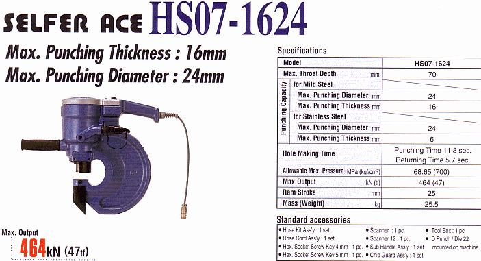 SELFER ACE HS11-1624 | HS07-1624 | HS06-1322 | HPD-05 | Punch & Die | Information
